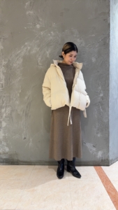 上からアウターを羽織るときも、首周りを調整することで、より綺麗に着こなせます✨