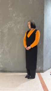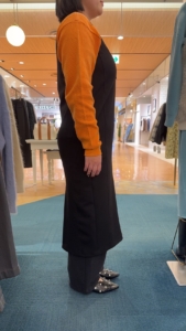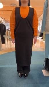 縦ラインを強調したシルエットが細見えを叶える、ジャンパードレス💓