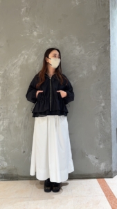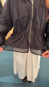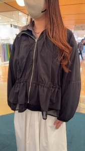 特徴的なフリルデザインと軽やかな素材感が印象的なジャケット💓