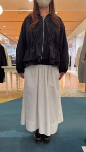 特徴的なフリルデザインと軽やかな素材感が印象的なジャケット💓