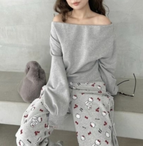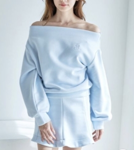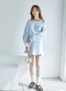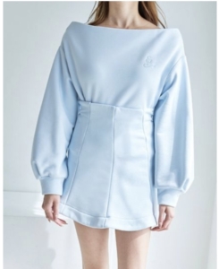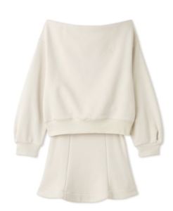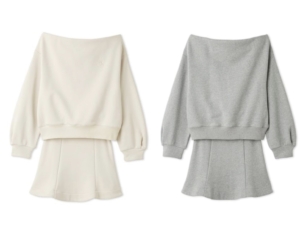 【サステナ素材を使用!オフショルダーで着られる人気のスウェットトップスとミニスカートのセットアップ】