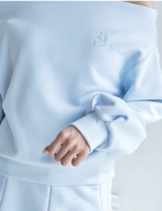 オフショルデザインでお作りしたキレイめスウェットプルオーバーと、