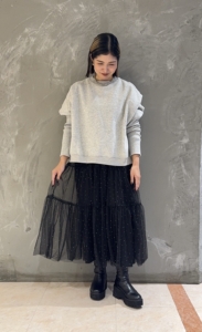 ティアードチュールラインストーンスカート