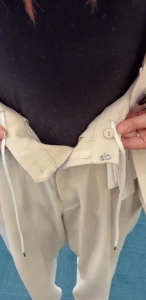 そしてウエストはしぼってサイズ調節が可能な紐とボタンが💡💡