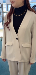 首元はノーカラーになっていて深めに開いているので
