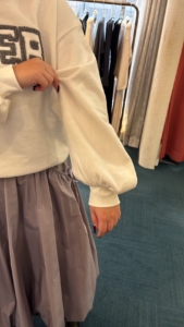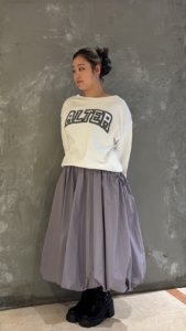バルーンシルエットで仕立ててふんわりボリューム感を