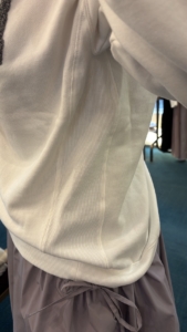 お袖と脇がリブ仕様でスッキリと体のラインを見せてくれるのも