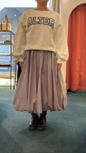 バルーンシルエットで仕立ててふんわりボリューム感を