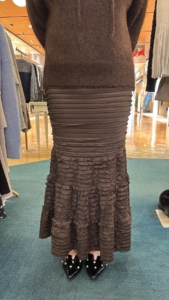 ティアードでひざはすっきりと裾に向かってのボリューム感が可愛いです♡