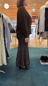 ティアードでひざはすっきりと裾に向かってのボリューム感が可愛いです♡