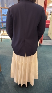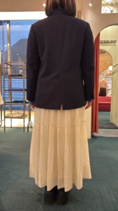 スリット入りで座ってもシワになりにくく動きやすいですよ~🎶