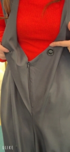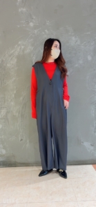 麻調ポリエステルツイルサロペット