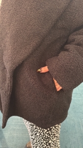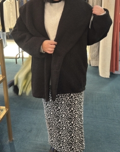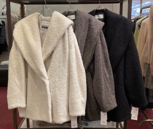 肩をすっぽり覆うケープカラーが存在感を放つボアコート~💓💓
