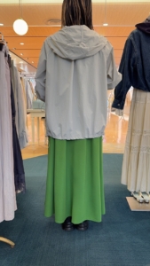フレアに広がるシルエットで体のラインを拾わないのも嬉しいです😌✨