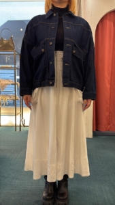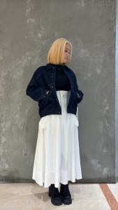 抜き襟で着ることで、今っぽい抜け感のあるスタイルの完成です🙋