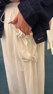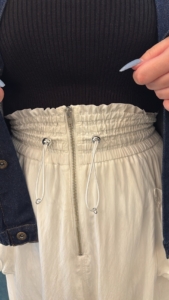 フロントのドロストで若干のウエスト調節が可能なのも嬉しいポイント❣