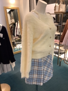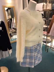カーディガンは広めのVに開いており、スタイリングに抜け感をプラスします☝