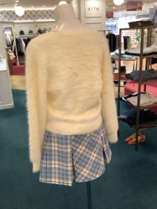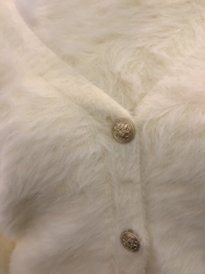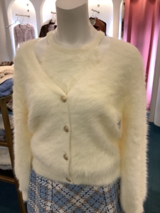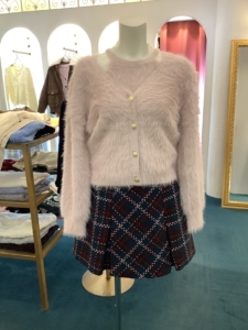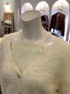 毛足の長いフェザーヤーンを使用して表情豊かに仕上げたカーディガンと