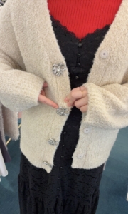 ジャガード編みでボリュームを持たせた肉厚な編地のカーディガン❣