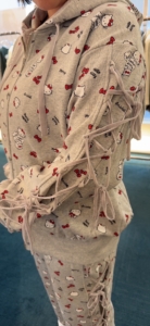 上下共にキティちゃんやリボンで埋め尽くされておりとても可愛いデザインです♡