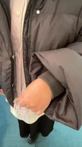 袖口はゴム入りで冷気を通しにくく、広がりを持たせた袖口は