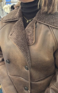 トレンド感あるムートン調の素材が使用されており、さらりと羽織れる風合いのよいコートに