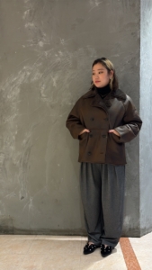 ボアの大きな衿が小顔効果を発揮してくれてます😊