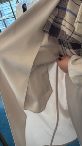 (ガンフラップとは主にトレンチコートの右肩から胸にかけてつけられた二重の布の事だそうです💡)