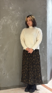 上品な花柄がプリントされ、エレガントなのに穿きやすいスカートを組み合わせてみました💕