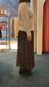 上品な花柄がプリントされ、エレガントなのに穿きやすいスカートを組み合わせてみました💕