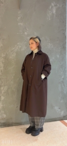 Aラインシルエットでステンカラーが大人カッコよく決まる