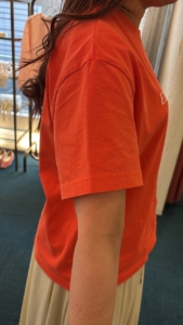 シンプルなロゴが可愛く、更に発色の良いオレンジが差し色になって