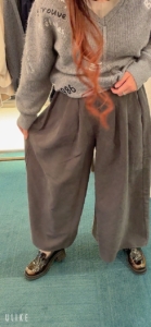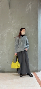 ざっくりとしたルーズなシルエットに縦のラインを加えカジュアルになり過ぎず