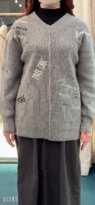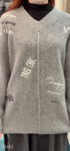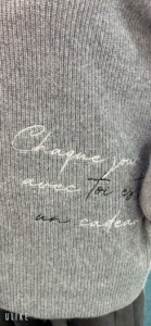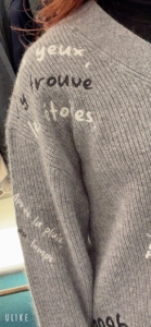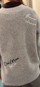 今年トレンドのメッセージ刺繍が施されたニットプルオーバー✨