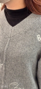 遊び心がある刺繍を、アンゴラ混のふわっとした風合いで