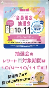 10月11日はシャミネ会員様限定の抽選会を開催🚩✨