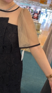 デコルテ部分はシアー切替の為程よい透け感で