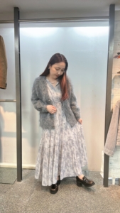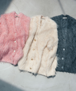 ふんわりとした毛足の長い起毛が特徴のロング丈カーディガンです🌟