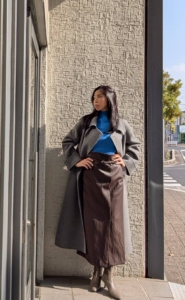 大人な印象も醸し出せるロング丈のコート✨