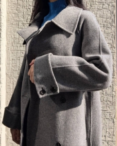 素材にこだわったロング丈のバルマカンリバーコートです。