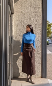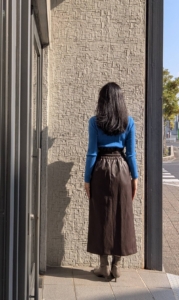 一見シンプルなストレートスカートは、計算された美しいフォルムのスカート