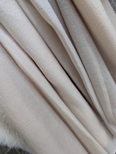 裾はドロスト仕様になっていて、ストリングスにはグログランテープを使ってアクセントになっています。