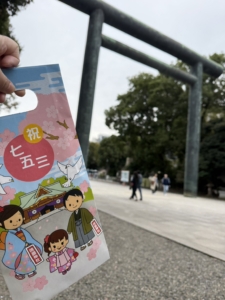 参拝後、おみくじ、お守りの売店にて