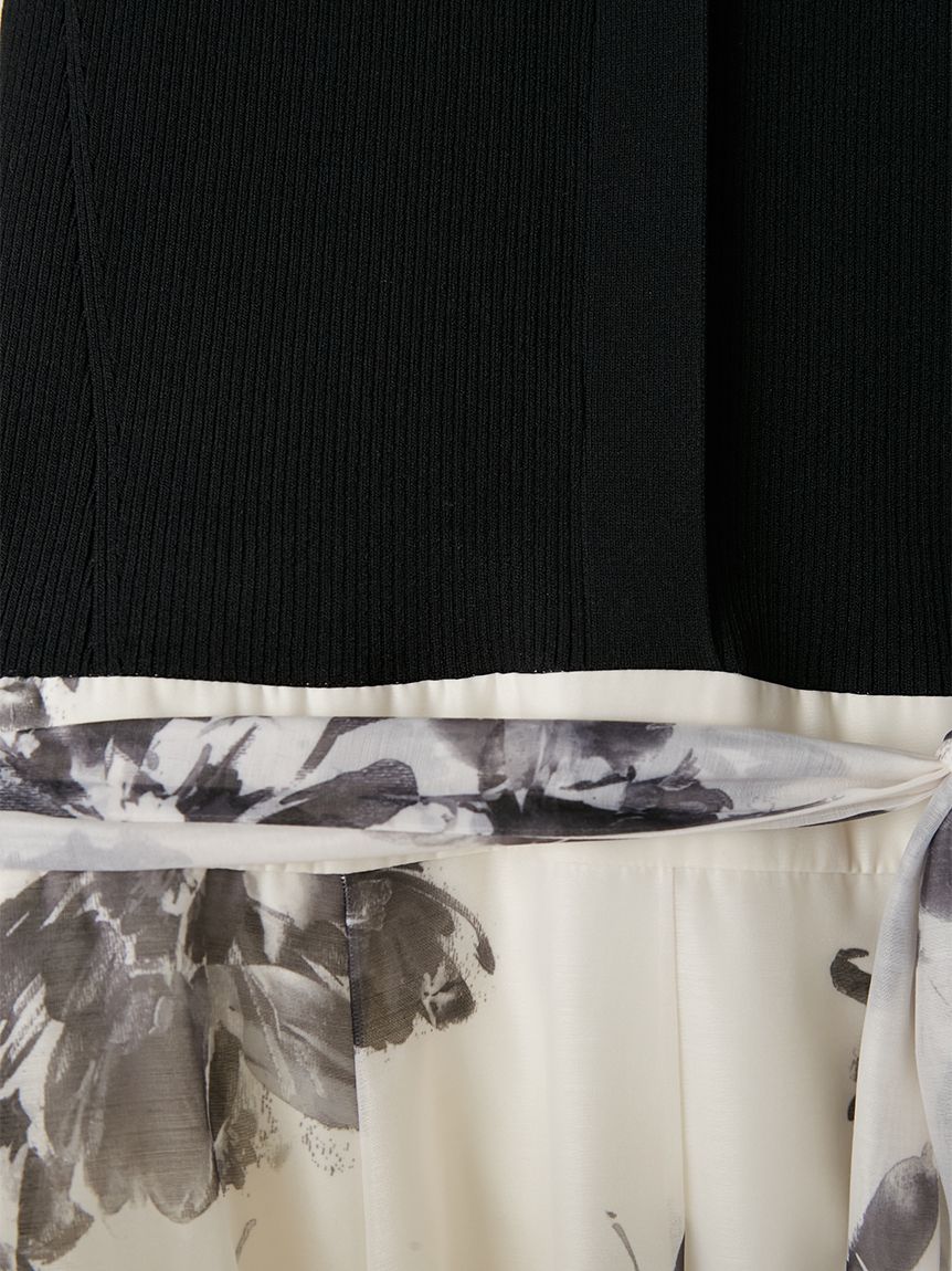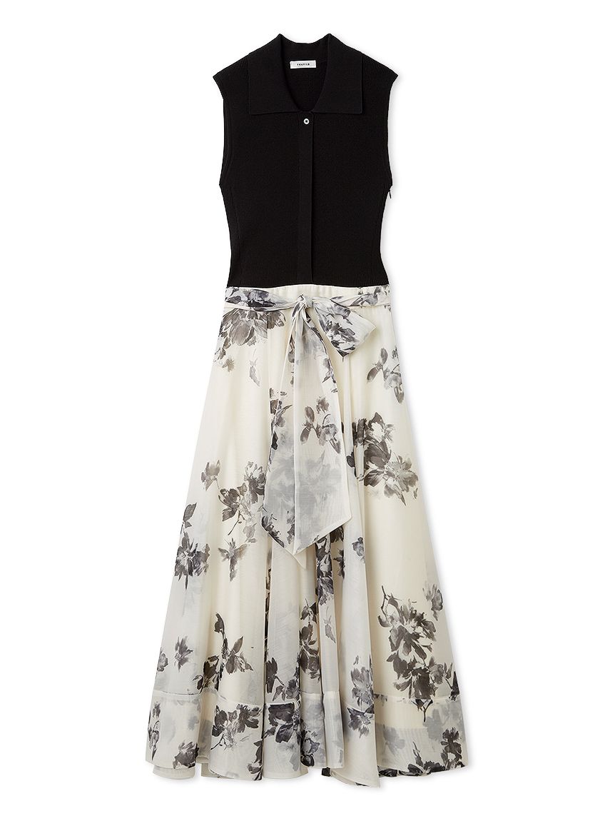 異素材のコントラストが映える都会的なポロニットのコンビワンピース。