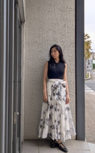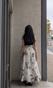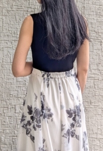 スカート部分は適度なハリ感のあるドライタッチのセミシアー素材。