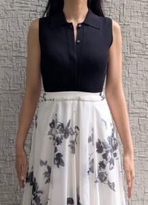 【ポロニットドッキングワンピースが洗練されたモダンなムードを演出】